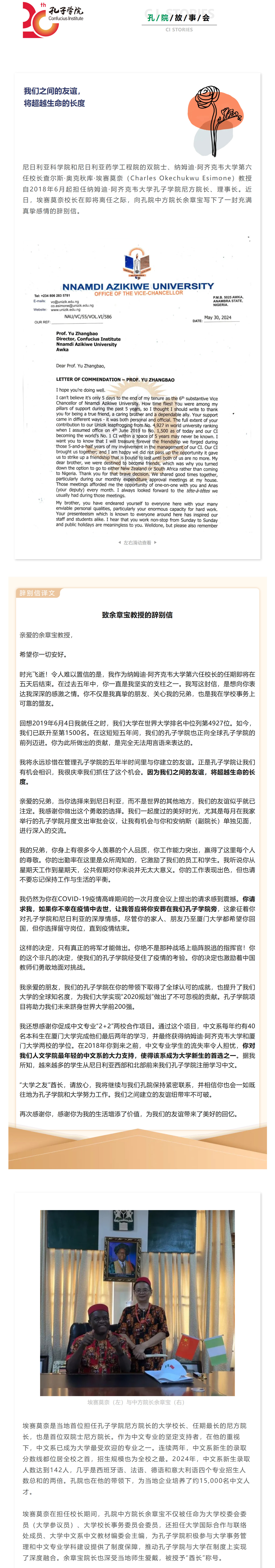 致余章宝教授:我们之间的友谊,将超越生命的长度