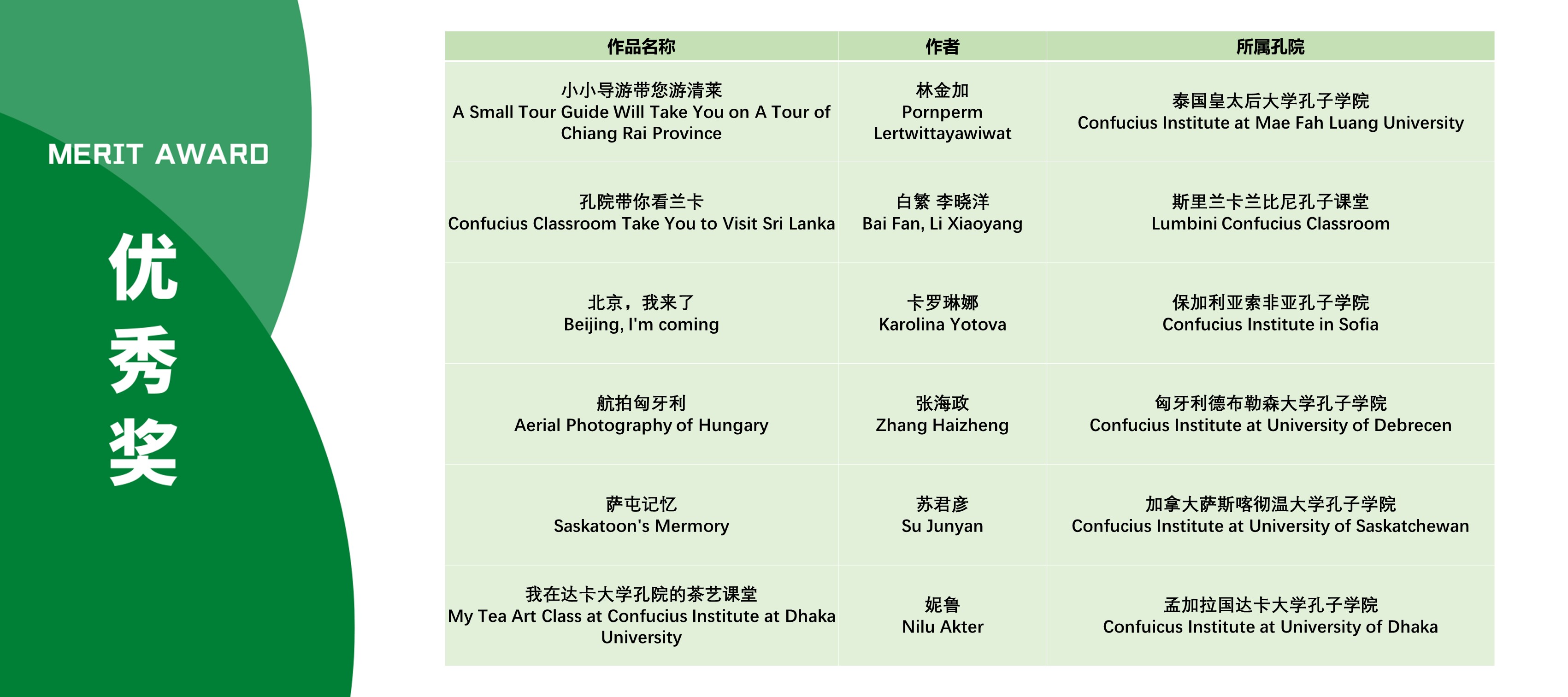 本次活动获奖视频将在孔子学院全球门户网站ci.cn持续展映。祝贺在本次活动中获得优异成绩的孔院人。