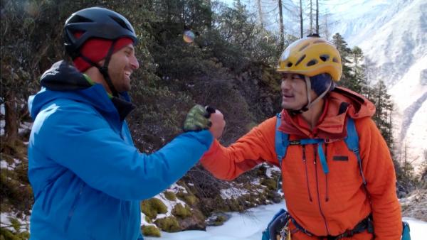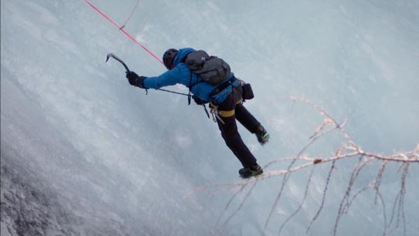 位于四川境内的四姑娘山,在藏语中有“勇士之王”之意。它被称为“中国的阿尔卑斯山”,“登山者的天堂”。本与中国登山运动员刘勇,将在此攀登海拔3600米处的、一座长300米的冰瀑。本和刘勇见证了一次“宰杀牦牛”。本极不愿意见到这样的事,但他还是忠实地记录下来。而其实,在他的镜头里,村民们的表情也显露着对“生命逝去”的紧张。这里的冬天没有作物生长,人们不能仅靠去当地商店买东西充饥。这是当地文化很重要的一部分,当地人想在这里生存不得不这样做。这里的居民们平日吃的用的,基本都属于纯天然或养殖品,营养价值极高。第二天,本和刘勇二人做足准备,来到这座冰瀑前。他们都没想到,阳光使冰瀑有点融化。这让他们的手套、衣物等沾上了水,他们感觉有可能被冻伤。二人互相扶持,虽精疲力尽,最终还是征服了这座冰瀑。除了令人赞叹的,除了超人的技能,便是他们对自然的敬畏?!罢驹诒俣ザ烁╊览龅纳焦龋慊岣械胶苷鸷??!北舅怠N颐峭茏龅降木褪恰袷毓嬖?、敬畏自然。