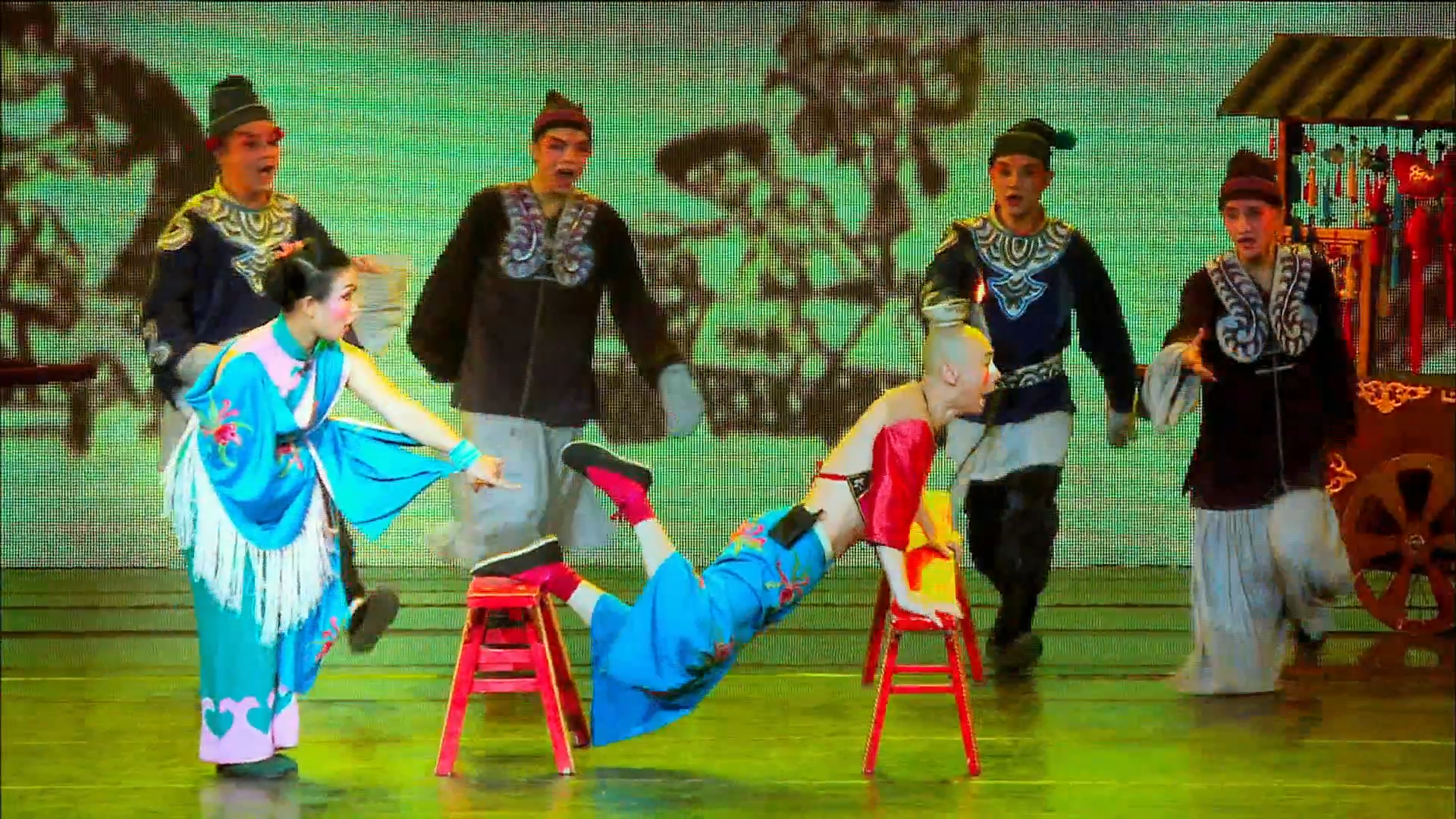川剧起源于四川省会成都,川剧最早是在街头表演。几百年前,这条街道如同今天一样繁华,中外商贩在这里聚集,用马换取丝绸和茶叶。街头艺人开始表演取材自中国神话和民间传说里的短剧供人们娱乐。这些故事通常具有道德寓意,滚灯讲的就是赌博的危害。滚灯特技是一边头顶着热油灯,一边做各种动作表演。这门绝活将舞蹈、杂技和喜剧小品融为一体。主角是一个有趣的家伙,是个丑角或者说小丑。有一部分的诙谐感来自于他的面部表情,动作看上去柔若无骨 ,非??湔?,很有逗乐的效果。
