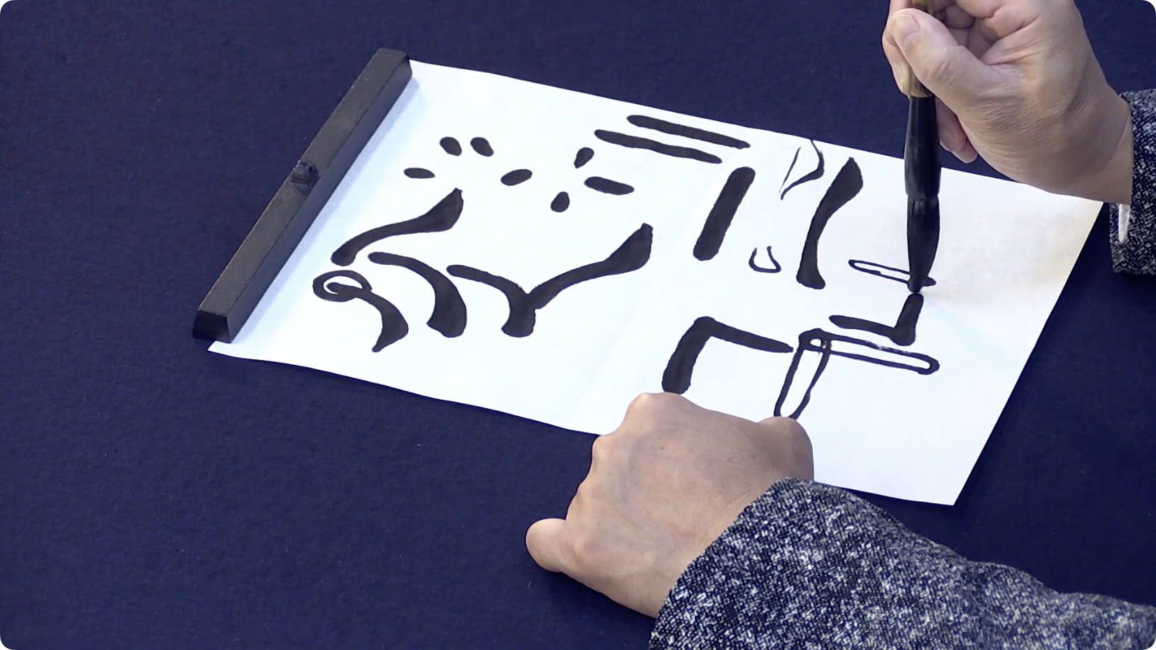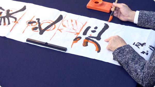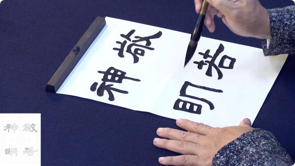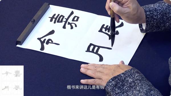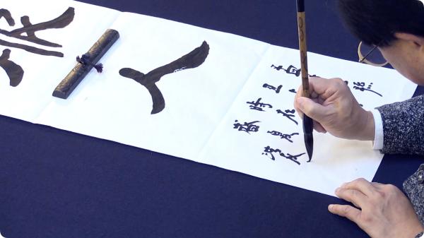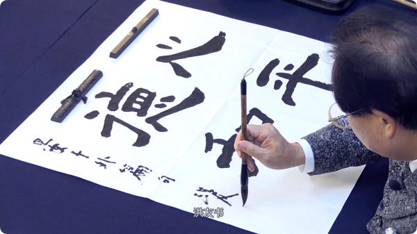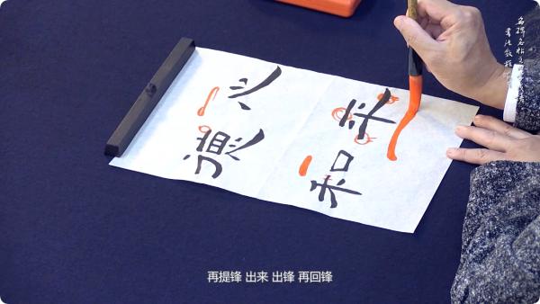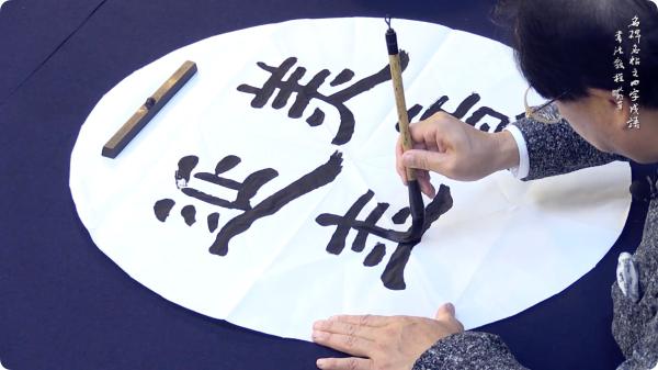 初步了解《曹全碑》以及艺术层面上的用笔、结字、章法的理论知识。教师用四字熟语示范点横竖等,解读它的用笔特点。接着,解读了《曹全碑》组成文字结构的要领,并用四字熟语来示范上下结构、左右结构等。然后,用大中小毛笔示范并解读《曹全碑》的章法学习,学习扇面、镜面、斗方、条幅的创作。最后,用大号和特大号笔来示范二八尺横批和四尺中堂。