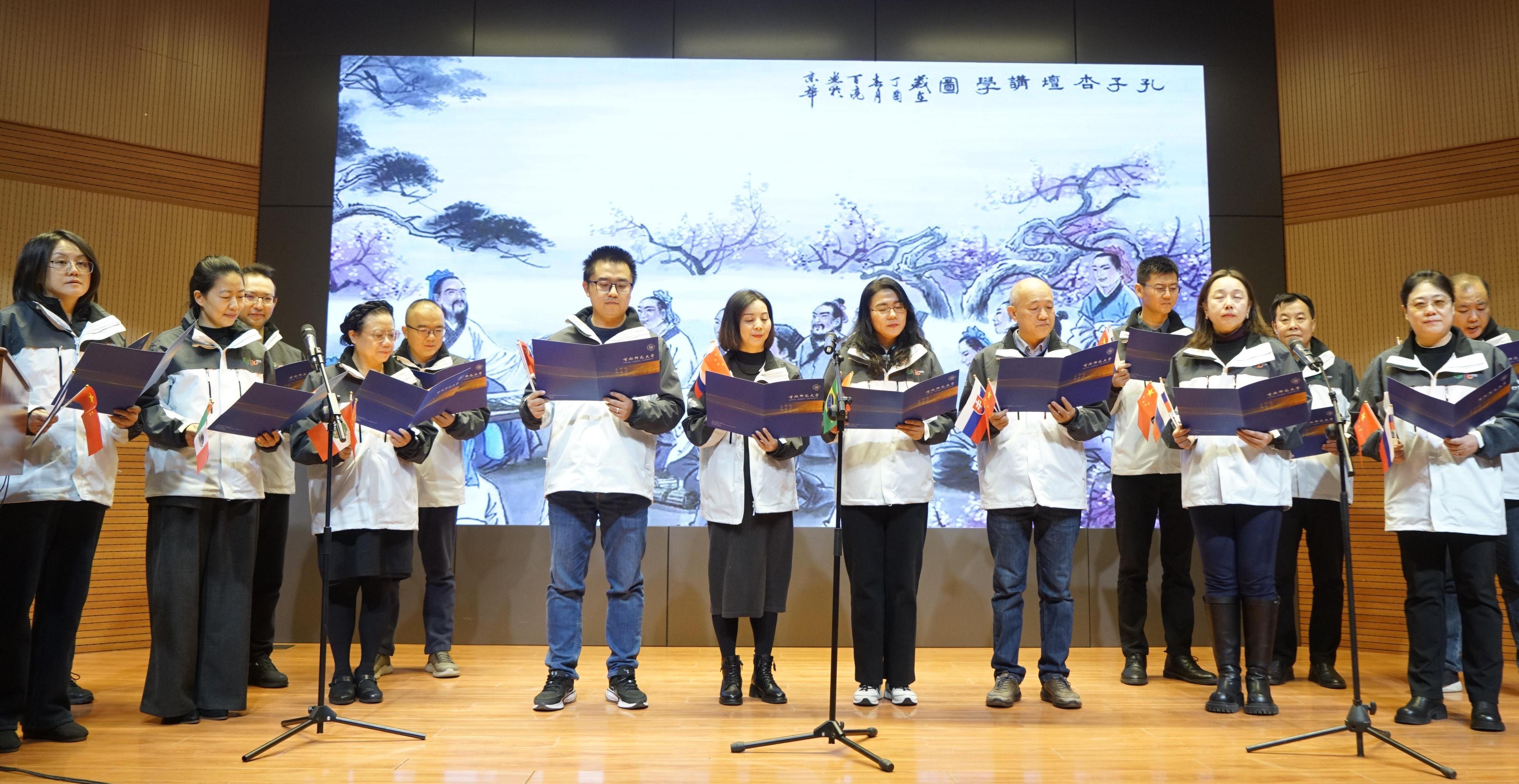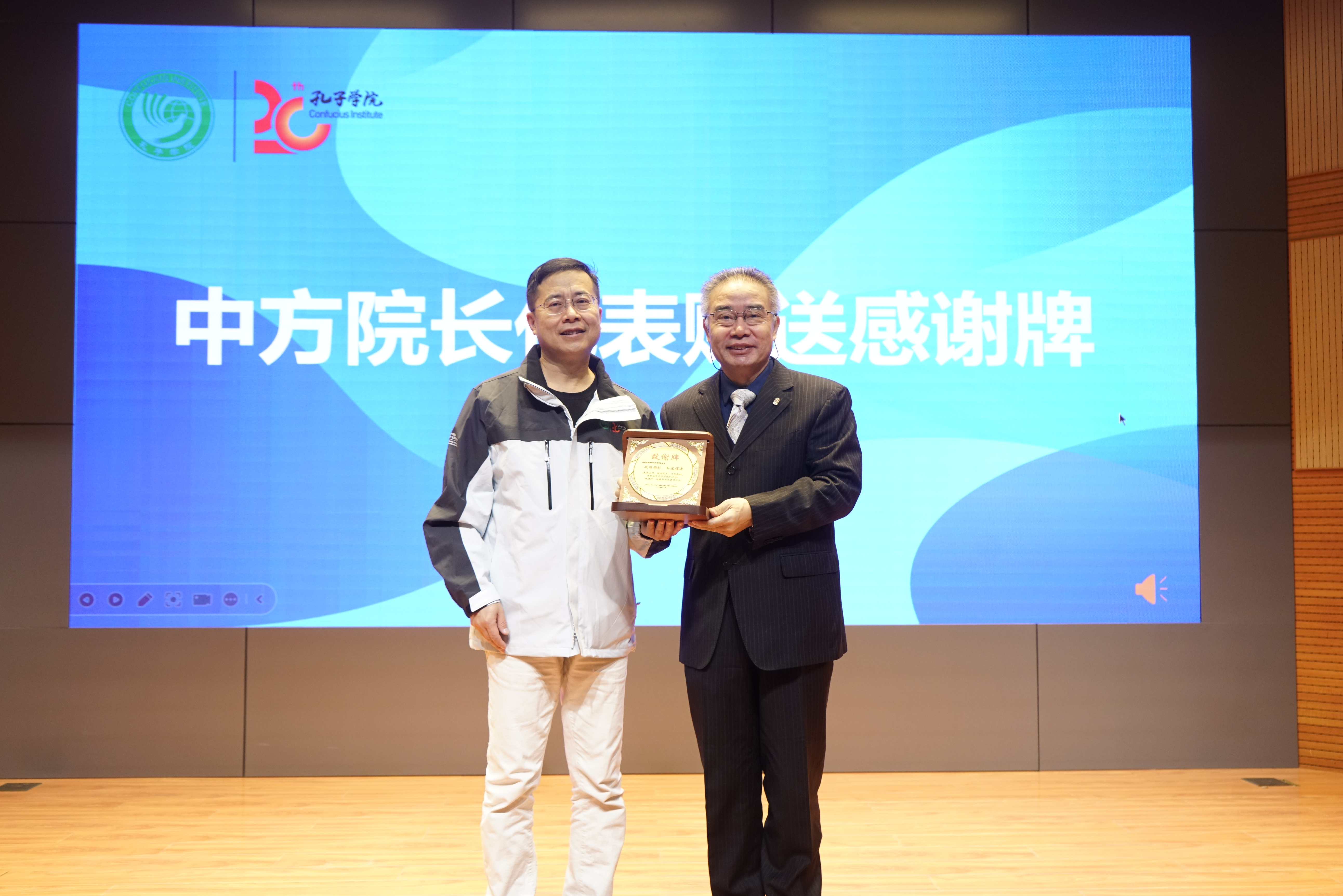 结业仪式由候任院长们自行组织策划,准备了精彩的才艺展示和培训成果汇报,既对院长文化活动组织能力做了一次实操演练,也表达了他们对孔子学院的热爱和美好祝福。2024年是孔子学院20周年与首都师范大学70周年相遇的双庆之年,院长们还向基金会和首都师范大学敬赠致谢牌。现场气氛热烈,充满温情。