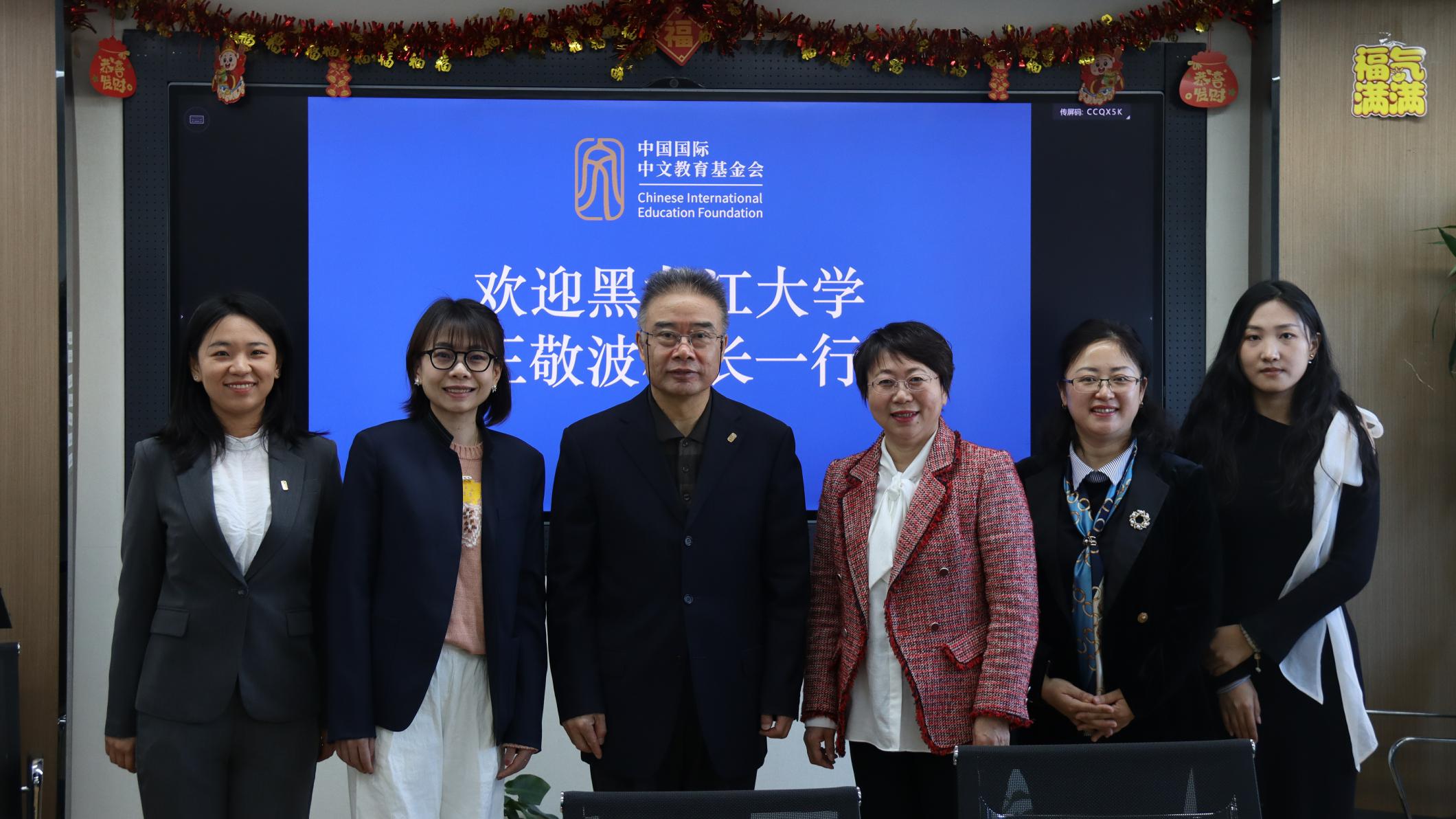 2024年3月12日,黑龙江大学校长王敬波访问中国国际中文教育基金会,基金会副理事长、秘书长赵灵山会见王校长一行,双方就孔子学院工作进行交流。