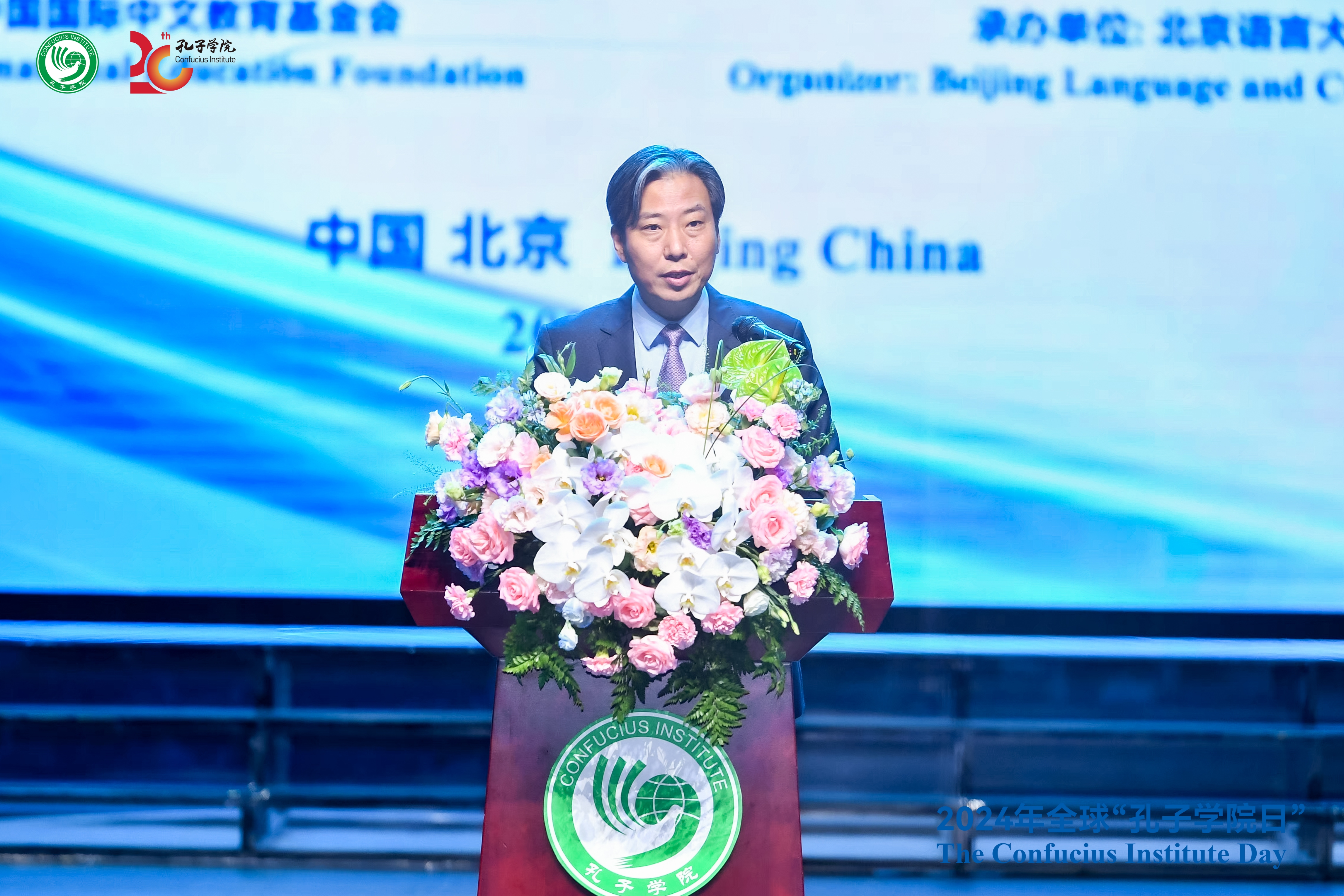 在北京,中国国际中文教育基金会隆重举办全球“孔子学院日”庆?;疃?。基金会理事长、中国科学院院士杨卫,基里巴斯驻华大使戴维·蒂阿博,尼加拉瓜驻华大使迈克尔·坎贝尔,中国政府相关部门代表、部分国家驻华使节、国际语言推广机构代表、孔子学院院长、中外方合作机构代表、专家代表、合作企业代表等500余人出席活动。